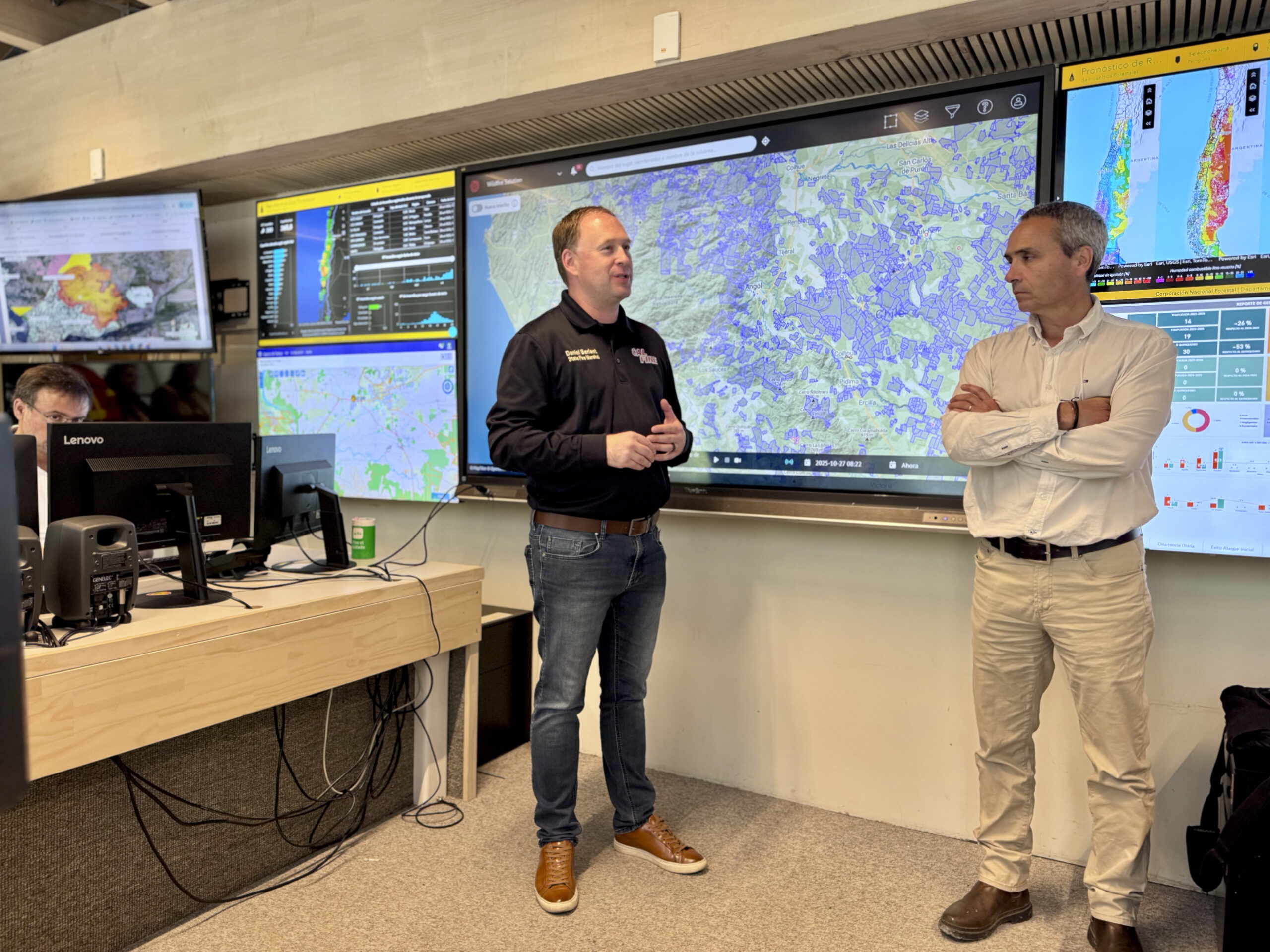 Por su parte, Daniel Berlant, director de Prevención de Incendios de California, destacó la importancia de fortalecer el trabajo preventivo y el aprendizaje mutuo frente al cambio climático: “El 95% de los incendios en California se originan por actividades humanas. Por eso, la prevención es una parte crítica de nuestra estrategia: detener los incendios antes de que comiencen. Hoy los fuegos son más intensos y destructivos, el clima es más cálido y la temporada de incendios se ha extendido más de dos meses en las últimas décadas. Esto nos obliga a innovar, aumentar recursos y mejorar la coordinación para proteger a las comunidades”, expresó Berlant.