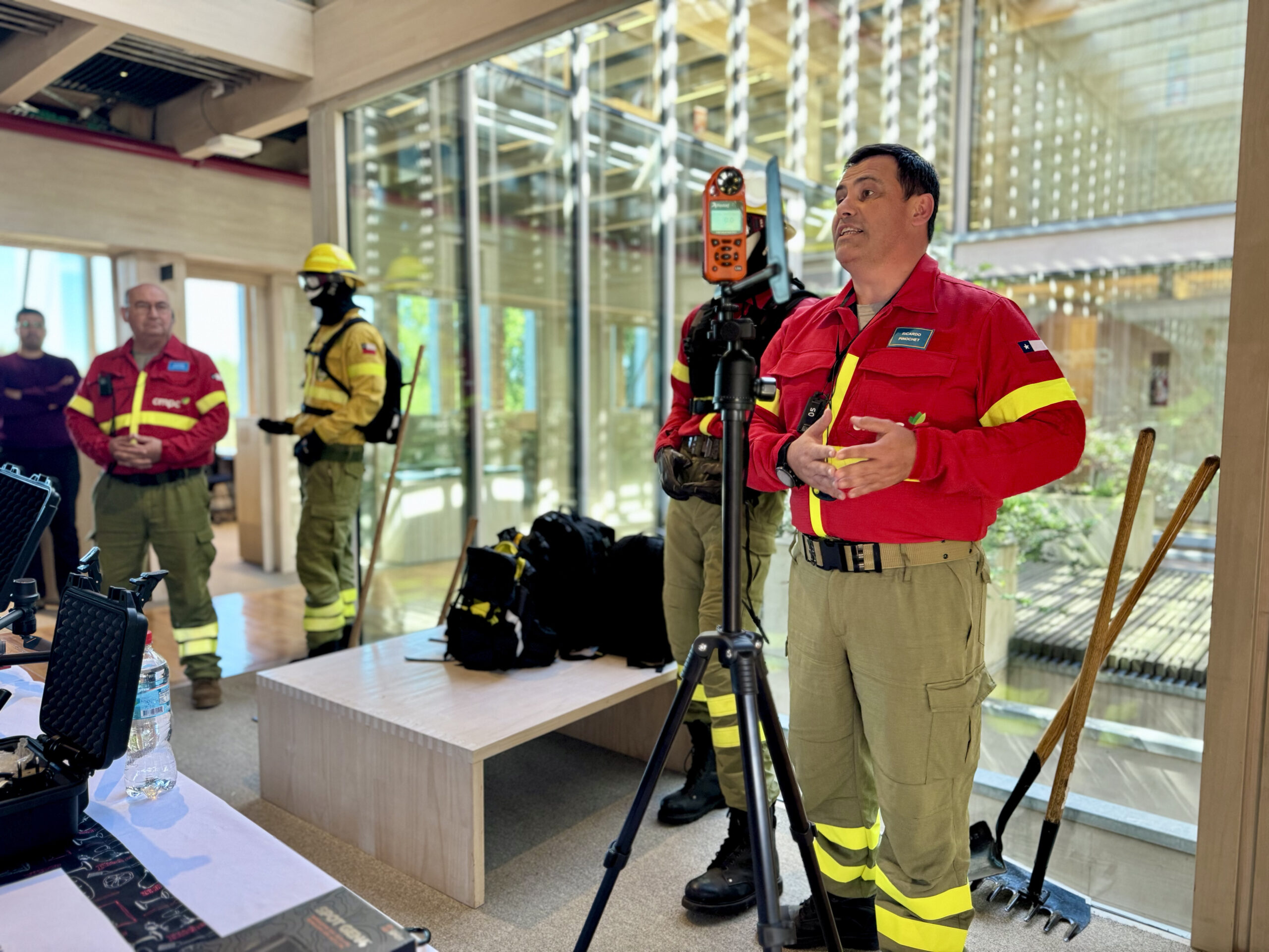 La visita —que se enmarca en una agenda que recorre Santiago, Concepción y Los Ángeles— contempló una reunión técnica en el edificio corporativo de CMPC en Los Ángeles, donde la compañía presentó sus estrategias de prevención y combate de incendios, así como su enfoque en innovación y gestión comunitaria del riesgo.